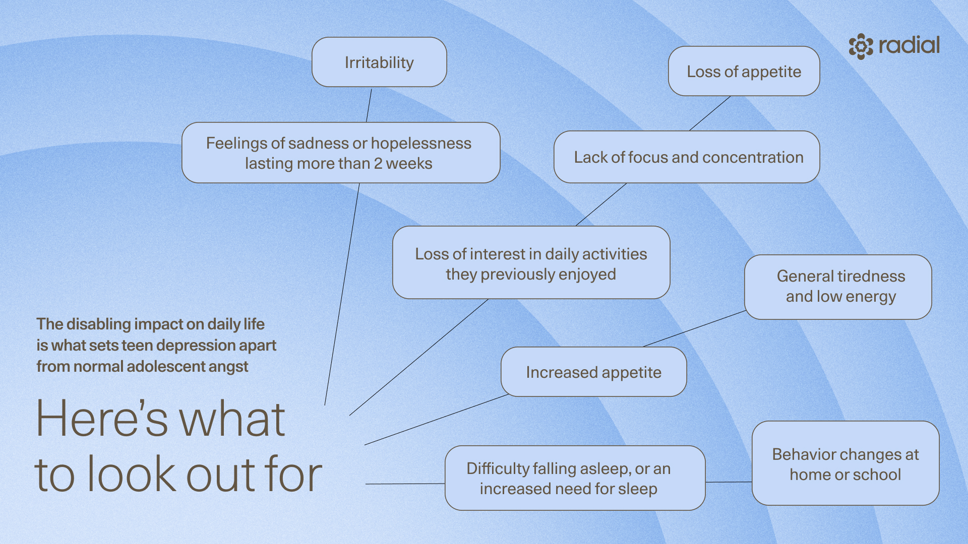 It’s important for family members to be mindful of the signs of this mental health condition because severe depression in teens may lead to them considering or planning for suicide.